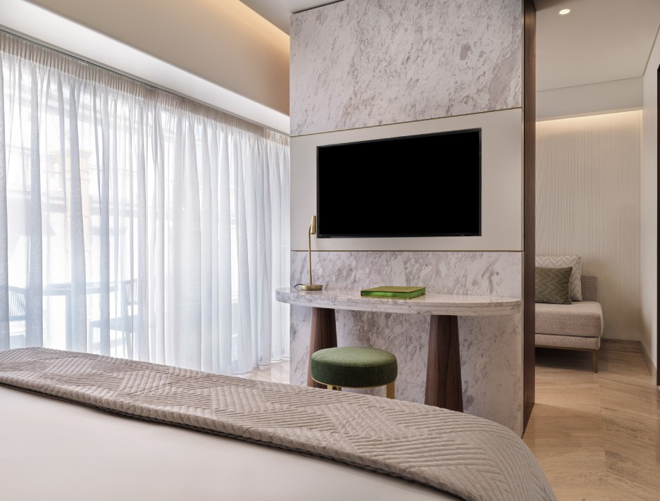 A refined suite that combines generous space with subtle elegance. The balcony captures a sweeping view of Αthens’ historic landmarks.