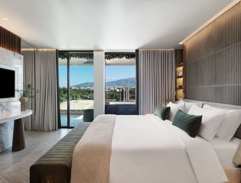 An airy suite that offers a spacious haven framed by panoramic views of the temple of olympian zeus.