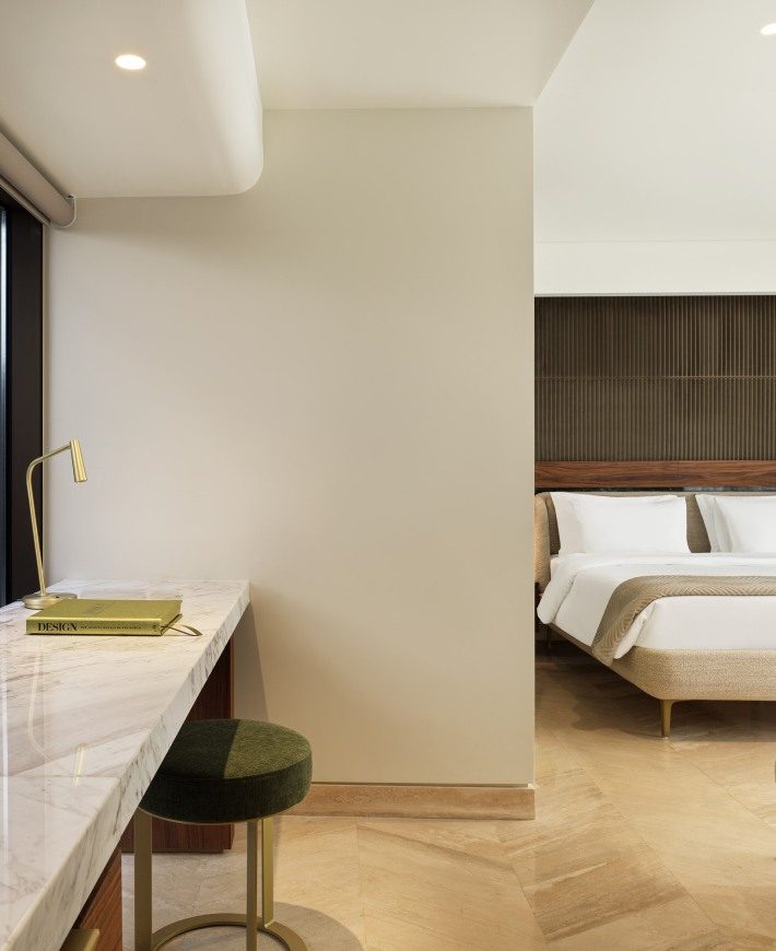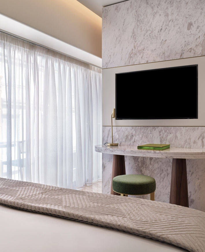 Bathed in gentle light and subtle hues, this suite offers a peaceful refuge from the city’s rhythm. From your balcony, the past and present converge in a panorama that enchants and inspires-a sanctuary where sophistication meets timeless beauty.