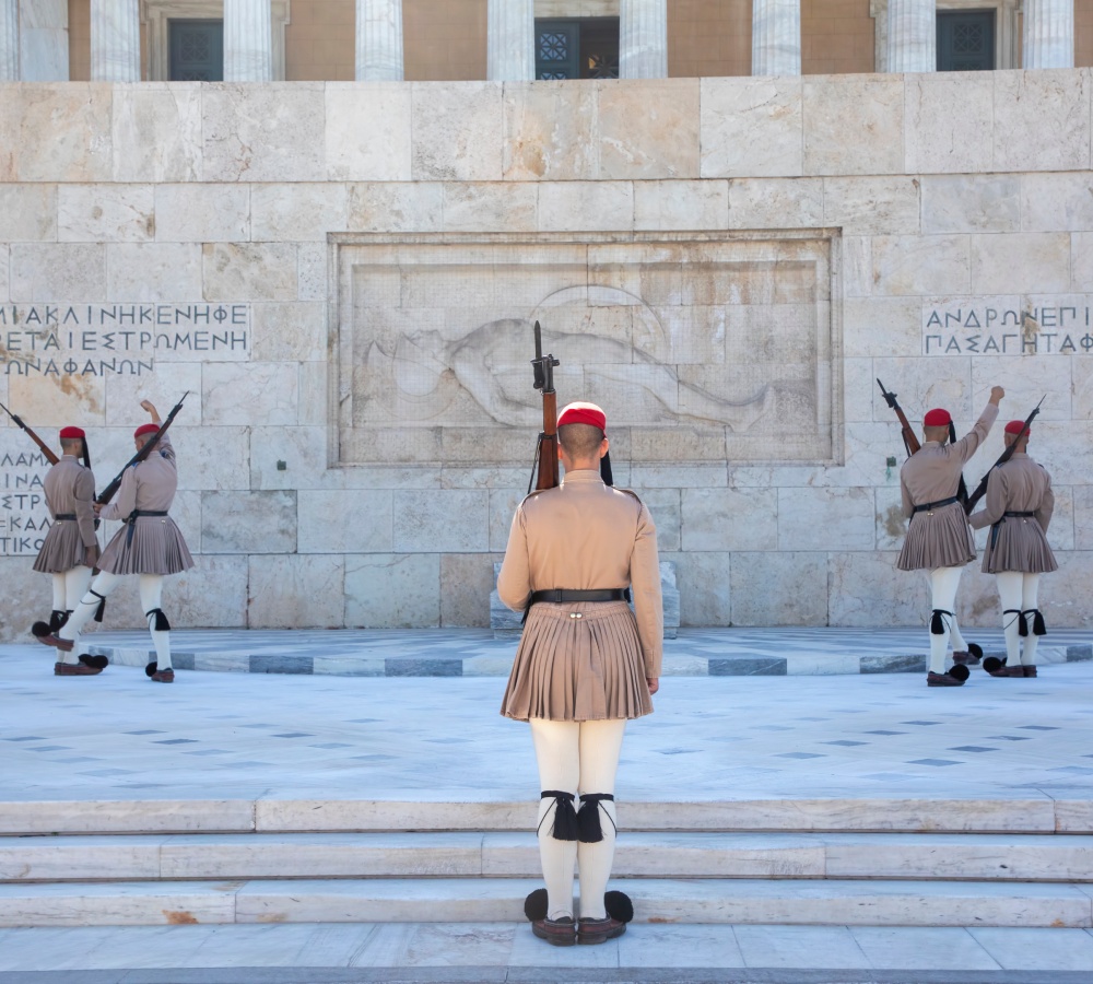 Syntagma Square, meaning “Constitution Square,” is Athens’ central square and a symbolic focal point of the city. It is bordered by important landmarks such as the Greek Parliament Building (formerly the Royal Palace), the Tomb of the Unknown Soldier, and the luxurious Grande Bretagne Hotel. The square is not only a hub for public gatherings, cultural events, and political demonstrations but also a green oasis featuring lush gardens and benches where locals and tourists alike can relax and enjoy the atmosphere. Syntagma Square is surrounded by cafes, shops, and restaurants, making it a vibrant and dynamic area that encapsulates the essence of modern Athenian life.