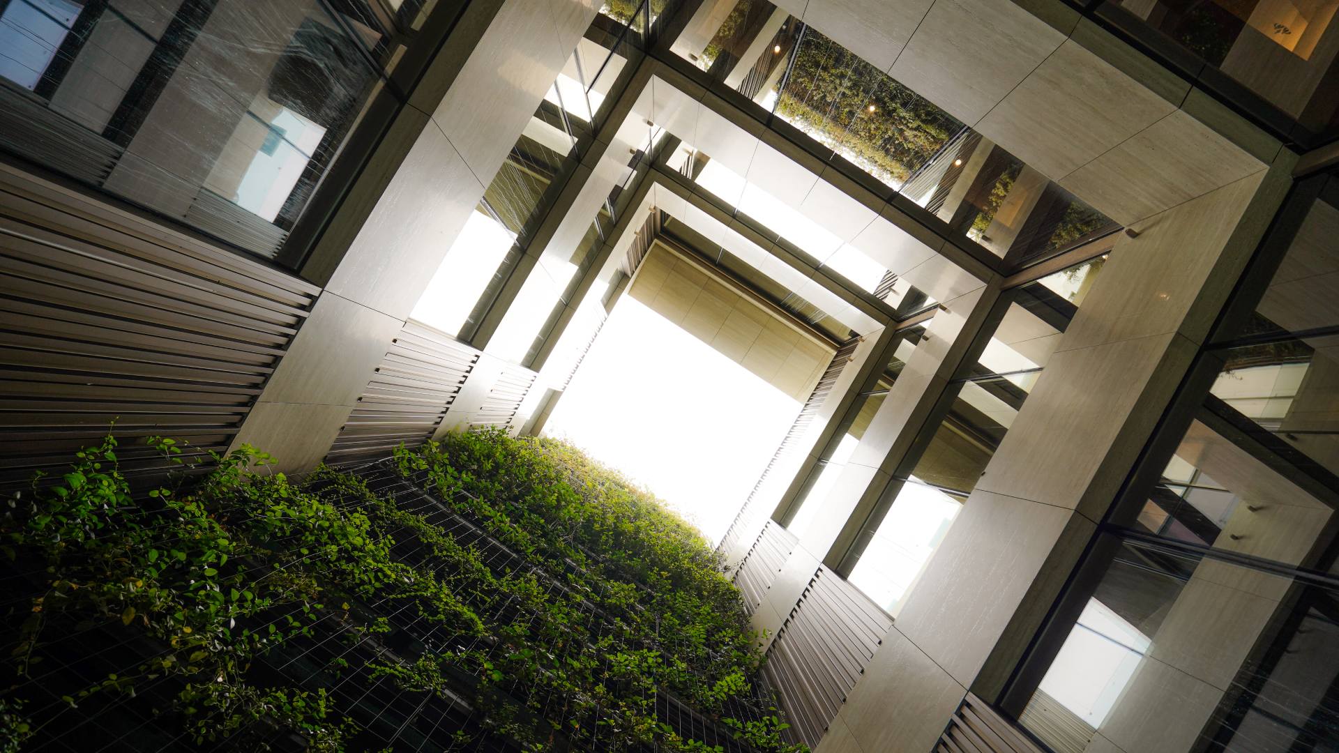 Anthology of Athens created the tallest vertical garden in Athens, covering the entire atrium of the building, with a height of 25 meters and an area of 100 sq.m., featuring dense vegetation of real climbing plants.